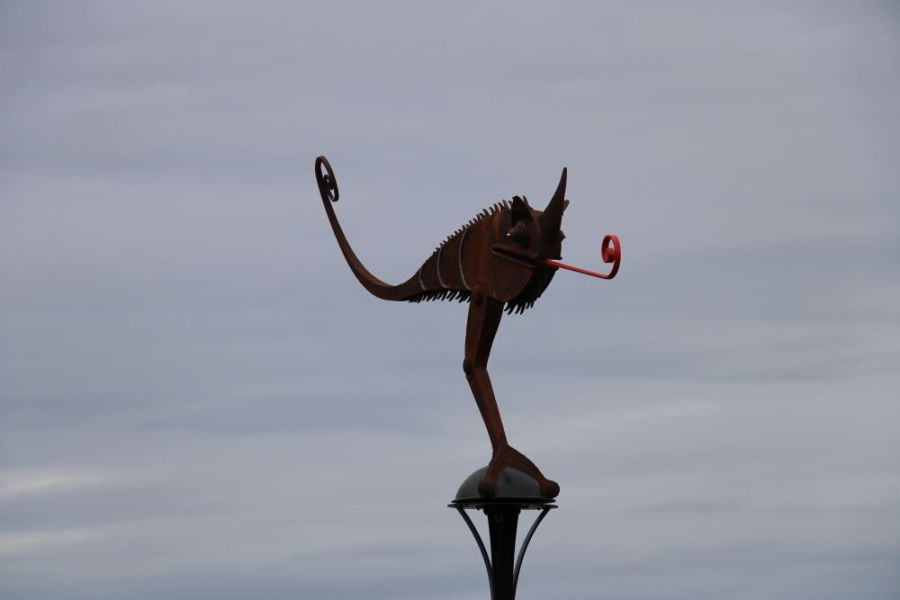 “Mijn uitgangspunt was dat ik iets wilde maken dat uit het water zou komen”, vertelt Juul over het ontstaan van zijn kunstwerk. “Hierin wilde ik graag de vrije hand hebben. Zoals altijd wanneer ik een opdracht ontvang, verdiepte ik mij eerst in de omgeving. Op de locatie waar het kunstwerk moest komen, bleken vroeger veel exoten te hebben geleefd. Dat bracht me op het idee van een kameleon: een dier dat zich steeds aanpast aan zijn omgeving en zo de veranderlijkheid van mens én natuur laat zien. Ik maak vooraf nooit een tekening, dat belemmert me in de vrijheid bij het maken.”