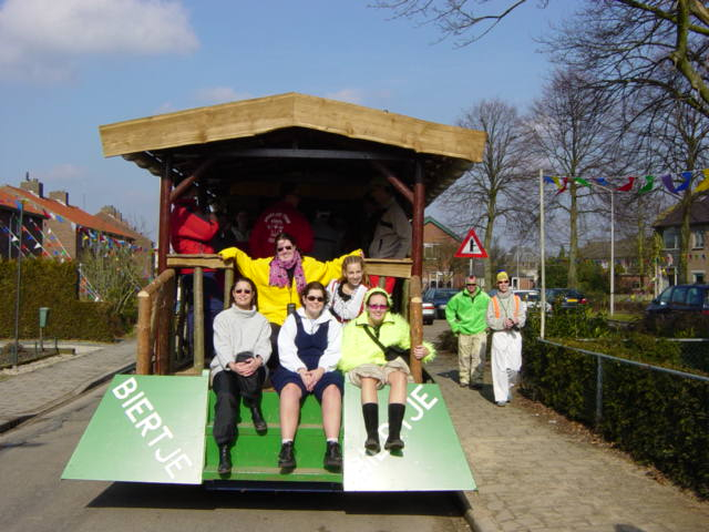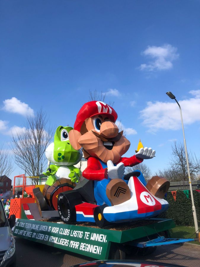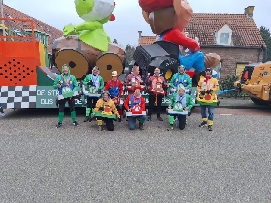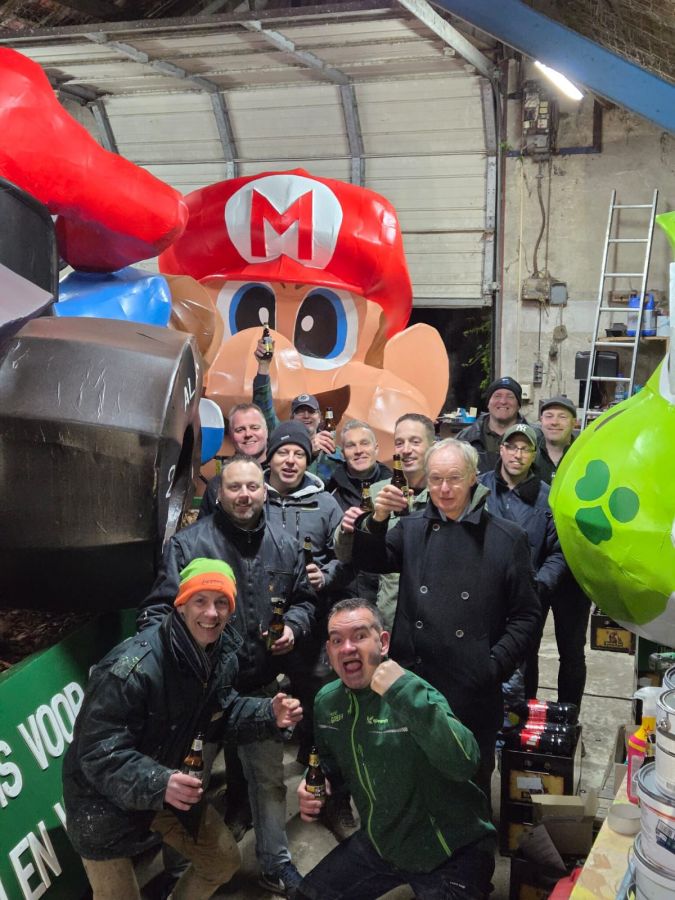 In die decennia groeide niet alleen de groep, maar ook het niveau van de wagens. Waar de eerste karren nog vooral bestonden uit hout, piepschuim en veel ducttape, kwamen later echte technische hoogstandjes voorbij. Denk aan de Ark van Noach, een imposant Vikingschip, de Heumense ophaalbrug, de Flintstones en vorig jaar nog Mario Kart. “We proberen elk jaar iets te maken dat mensen herkennen én verbaast,” zegt Nick. “Al lukt dat meestal pas na het derde biertje.”