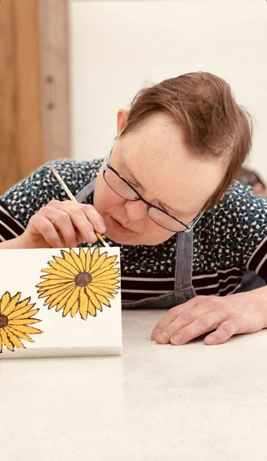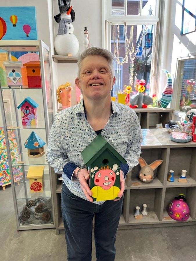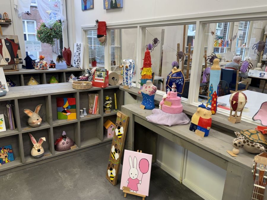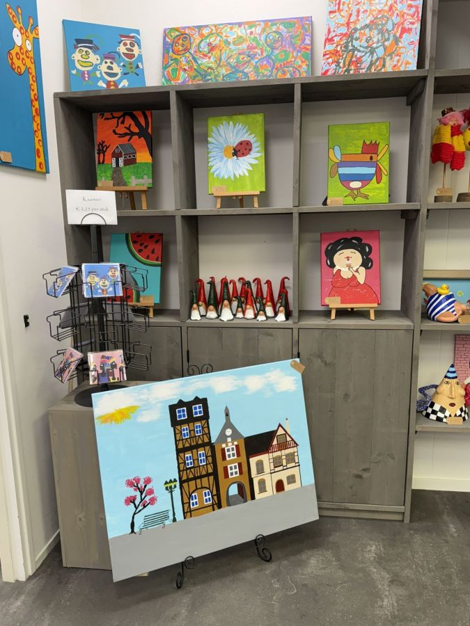 Dat wil overigens niet zeggen dat er nooit wordt doorgepakt. Integendeel. “Natuurlijk zetten we geregeld de schouders eronder om mooie producten te maken,” vult begeleider Marleen Thijssen aan. “Maar altijd op een ontspannen manier. We werken mét elkaar, niet ónder druk.”