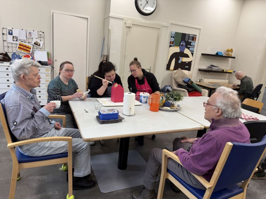 “We beginnen de dag bewust samen aan tafel,” vertelt Marleen Kanters, begeleider bij Papyrus. “Dat moment zorgt voor verbinding. Iedereen mag vertellen wat hij of zij wil. De één deelt een grap, de ander iets wat hem bezighoudt. Het is een fijne start van de dag, zonder haast.”