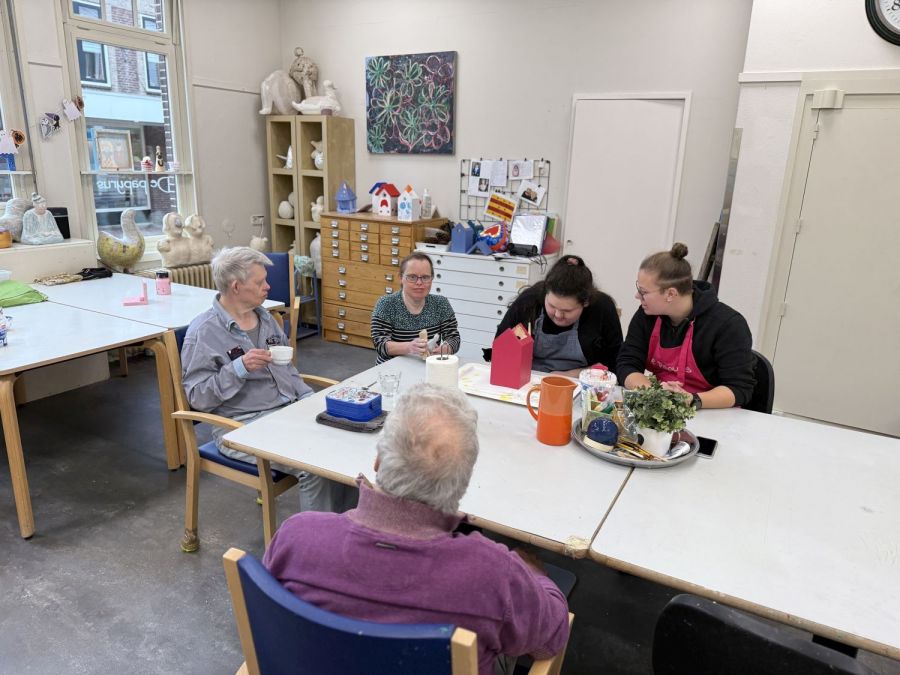 Het is precies 10.00 uur wanneer ik bij Papyrus in Grave binnenstap. De deur gaat open en nog voor ik mijn jas heb uitgetrokken, merk ik het al: hier hangt een huiselijke, warme sfeer. Ik val letterlijk met mijn neus in de boter, want 10.00 uur betekent maar één ding: koffietijd. Met z’n allen zit men aan de grote tafel, waar koffie, thee én wat lekkers klaarstaan. Er wordt gelachen, gekletst, geplaagd en bijgepraat. Het voelt als binnenkomen bij een grote familie.