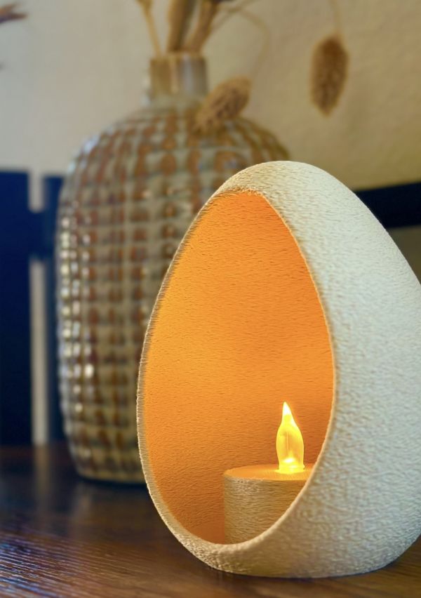 Een van zijn meest recente projecten is een seizoensgadget: een paasei met een waxinelichtje erin. “Het is een stijlvolle en sfeervolle toevoeging aan je paastafel,” vertelt Rens enthousiast. Dit product laat goed zien hoe hij functionaliteit en design weet te combineren in zijn creaties.