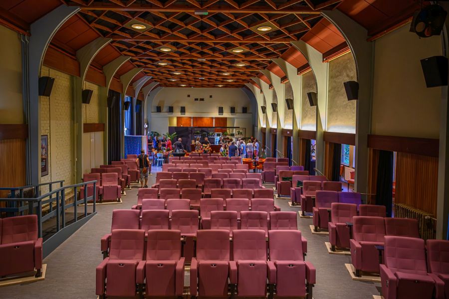 Bij binnenkomst in het Filmcafé Grave reageer ik meteen enthousiast. De entree is sfeervol aangekleed met kleurrijke filmposters en een oude projector. De filmzaal straat een gezellige en knusse sfeer uit. Achterin de zaal bevindt zich een gezellige bar met comfortabele zitjes, vooraan keurige rijen met paarse bioscoopstoelen en enkele loveseats. Mijn kaartje heb ik online gereserveerd, waarbij ik mijn favoriete plek kon kiezen. Ik word vriendelijk ontvangen door een vrijwilligster die mijn kaartje scant en vraagt of ik hier vaker ben geweest. Wanneer ik aangeef dat dit mijn eerste keer is, legt ze me duidelijk en vriendelijk het concept uit. Maarten vertelt: “Het Filmcafé wordt volledig gerund door vrijwilligers. Van schoonmaken en de horeca tot het draaien van de film, de taken zijn heel divers.” Bestuurslid Margreet Schouren vult aan: “Als vrijwilligers delen we een gemeenschappelijke passie voor film en het bieden van gastvrijheid. We runnen dit Filmcafé samen, wanneer de bezoekers een leuke avond hebben, hebben wij dat ook.”