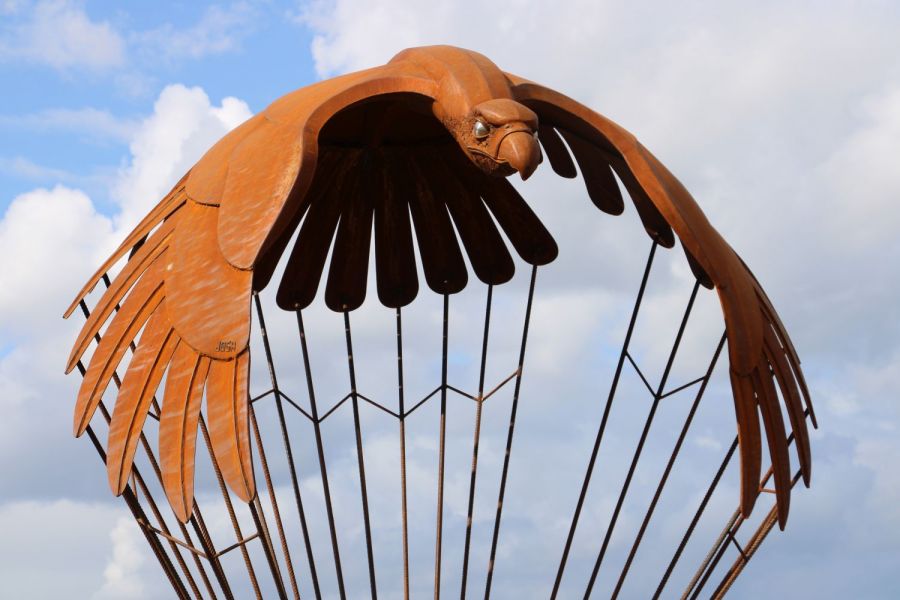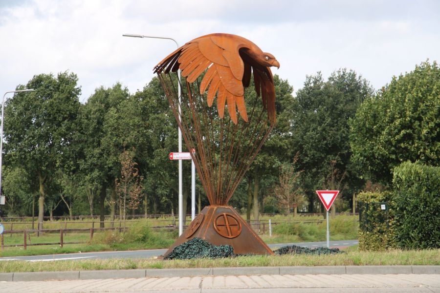 Uit CorTenstaal, een duurzaam, weerbestendig staal met een karakteristieke roestlaag, vervaardigt Joshua Pennings indrukwekkende sculpturen. Recent werkte hij intensief aan het kunstwerk dat nu de rotonde in Velp siert, als eerbetoon aan luitenant Hanford A. Files en alle Amerikaanse soldaten die in onze regio voor de vrijheid hebben gestreden.