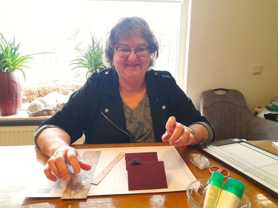 Een opgewekte José Schut staat al in de deuropening van haar huis in Rijkevoort en heet me hartelijk welkom. In de huiskamer ligt op de tafel, naast wat lekkernijen en iets te drinken, een placemat klaar met diverse materialen: een schaar, lijm en een mapje met verschillende soorten papier. Stap voor stap zal José me laten zien hoe ik zelf een wenskaart kan maken. Als kind zat José steevast aan de knutseltafel; met papier, karton en allerlei materialen. Later, in haar werk in de gehandicaptenzorg, probeerde ze aan het zorgen altijd een tikkeltje creativiteit toe te voegen. Toen ze twee jaar geleden door een ernstige blessure aan haar voet thuis kwam te zitten, werd creativiteit meer dan alleen maar een hobby.